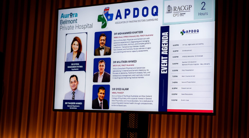 Belmont Private Hospital was proud to sponsor the Association of Pakistani Doctors Queensland (APDOQ) event, Late Life Struggles – Integrating Physical and Mental Health in Older Adults, held at the Emporium Hotel South Bank.